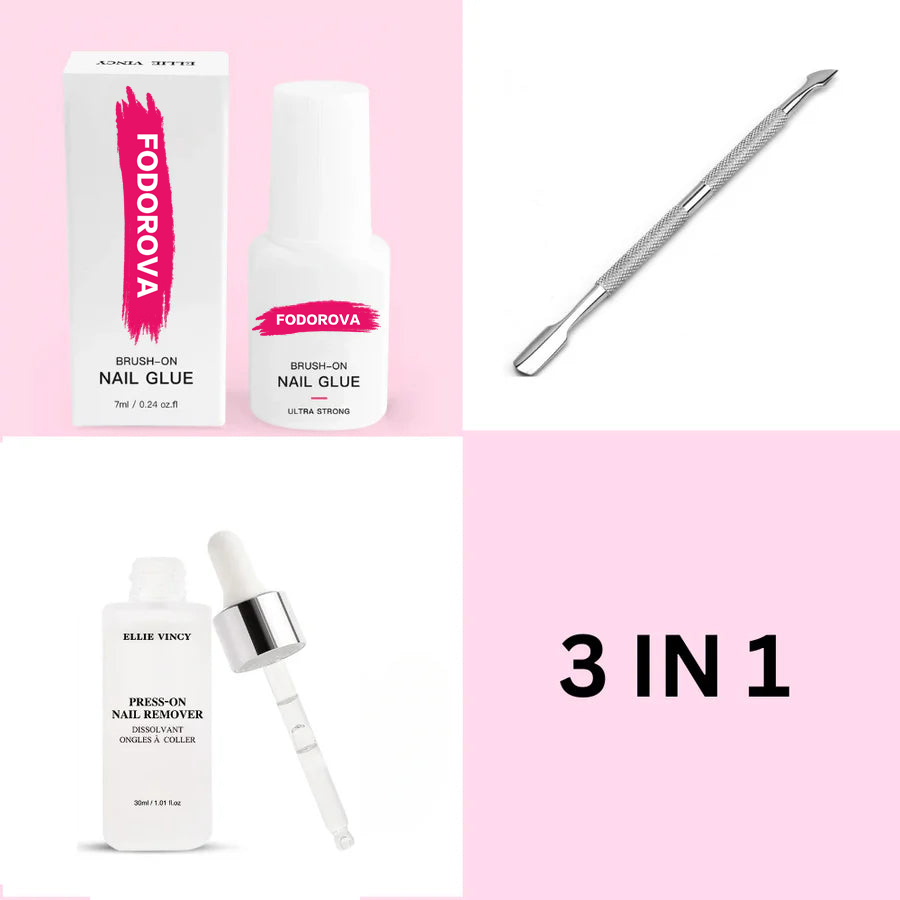 3 IN 1 | Brush-On Nail Glue & Nail Glue Remover & Cuticle Pusher