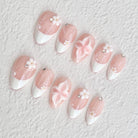 5. Press the Press-on Nail onto the sticky tad, starting from the cuticle and working towards the tip.