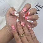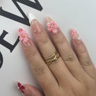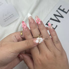 5. Press the Press-on Nail onto the sticky tad, starting from the cuticle and working towards the tip.