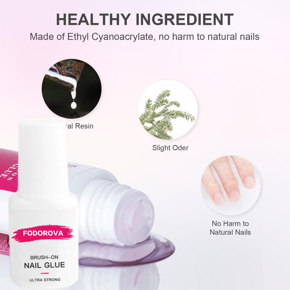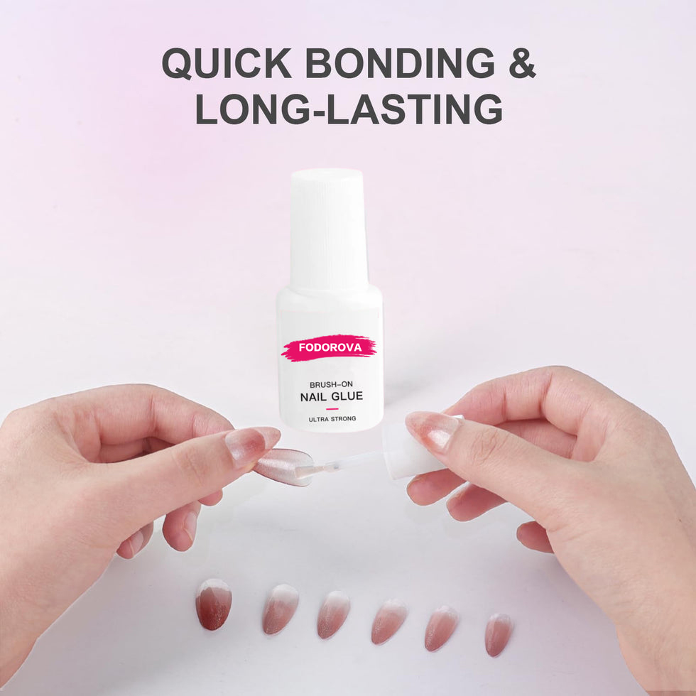 Fodorova Press-on Nail Glue is perfect for false nails, small nail art decorations such as rhinestones, beads & gemstones, nail salons, and home use. Compatible with all brands of nail tips.