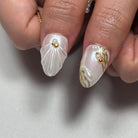- Press the Press-on Nail onto the sticky tad, starting from the cuticle and working towards the tip.