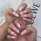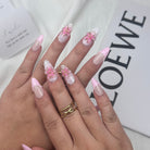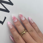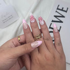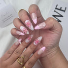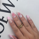 5. Press the Press-on Nail onto the sticky tad, starting from the cuticle and working towards the tip.