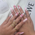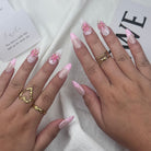 Each set has 10 pcs of Press-on nails and a Free application kit(Nail glue, Sticky tab, Nail file, and cuticle pusher). Within minutes- you'll have nails fit for a Queen!